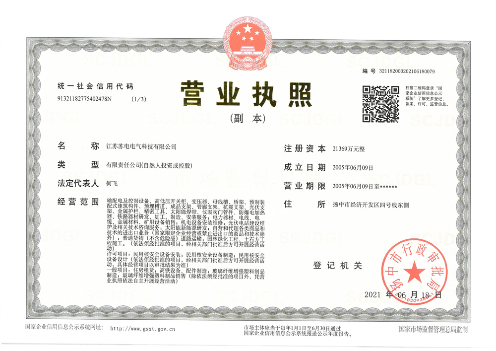 江蘇蘇電電氣科技有限公司是一家集制造、經(jīng)營、服務于一體的綜合性企業(yè)。成立于2005年6月9日,注冊資金21369萬元,現(xiàn)有職工186人,其中高級工程師3人 ,工程師15人,各類專業(yè)技術人員28人,年銷售額3億多,是揚中市開發(fā)區(qū)三十強企業(yè)之一。 公司立足于電器領域,形成了多元化的發(fā)展格局。憑借優(yōu)秀的團隊、精良的設備、優(yōu)勢的技術和高效的管理,專業(yè)生產(chǎn)高低壓開關柜、母線槽、抗震支架、管廊支架、成品支架、光伏支架、電纜橋架等。在供配電、大型建筑、市政工程、光伏發(fā)電等領域享有較有高的聲譽。 公司始終秉承“求實、創(chuàng)新、和諧、共贏”的發(fā)展主題,進行了一系列變革,優(yōu)化資源配置,搭建了高效發(fā)展的平臺。公司較早地采用了CAD電腦輔助系統(tǒng),擁有數(shù)控加工中心。產(chǎn)品被青島新機場、江蘇省電力公司、湖北省電... ...
